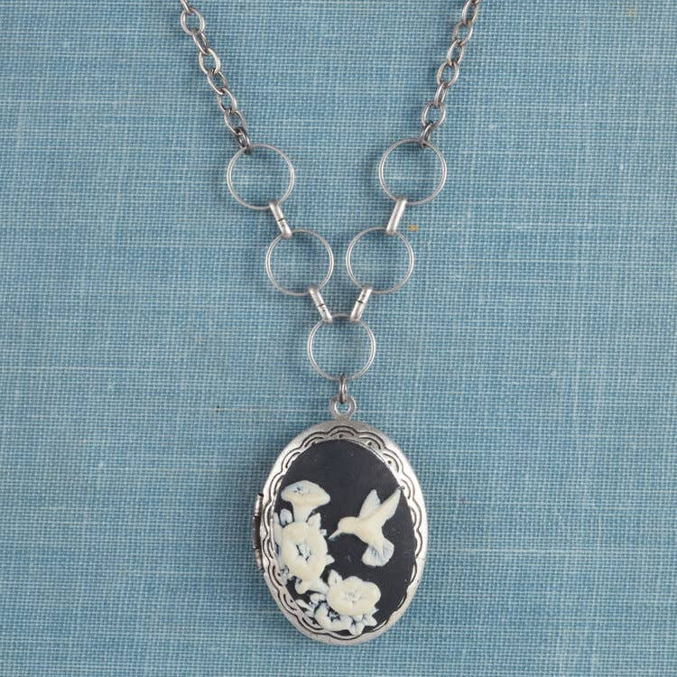 Metal locket with hummingbird resin cameo.