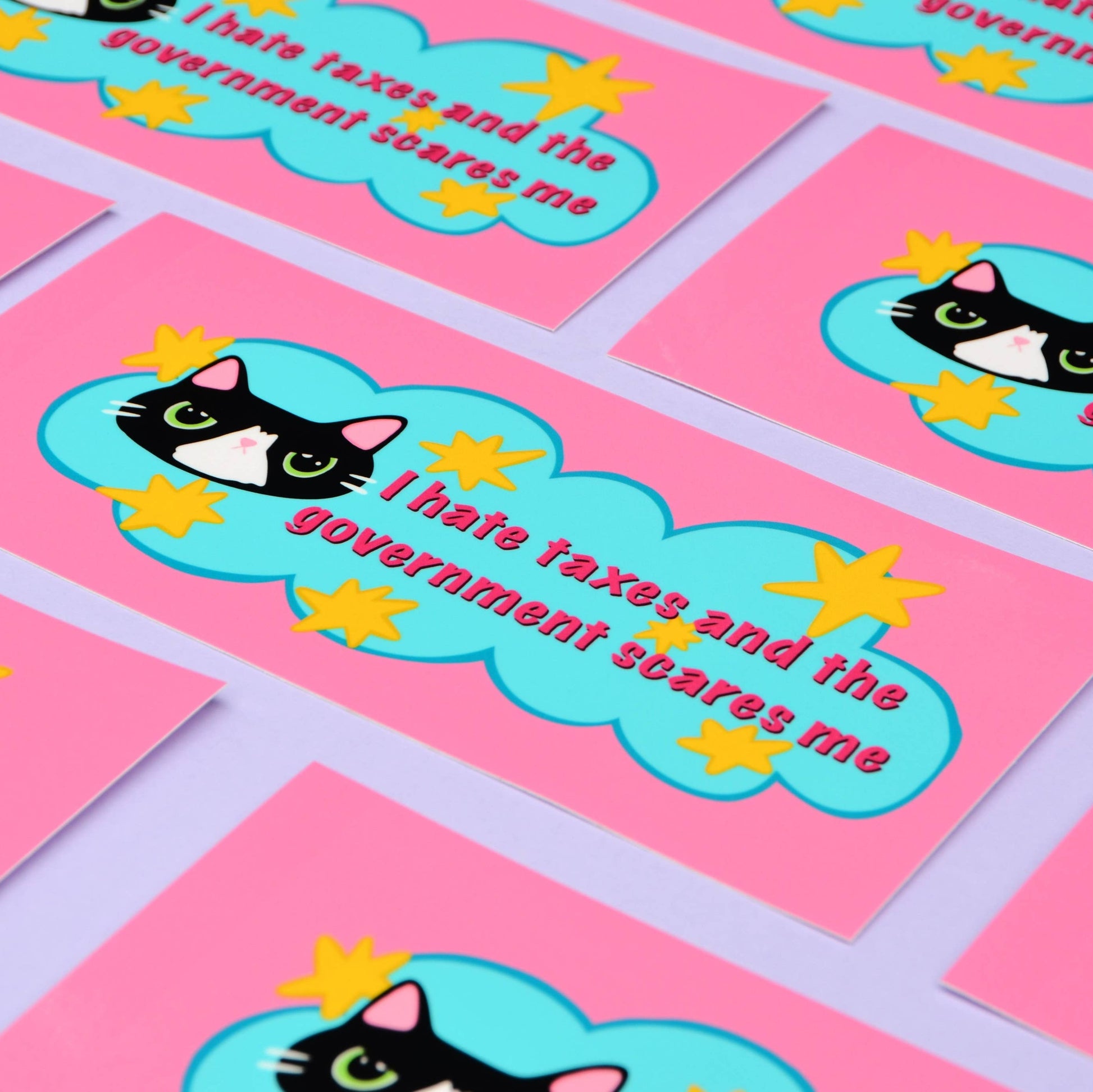 Let everyone on the road know how you feel about taxes and the government with this delightfully cute bumper sticker.
