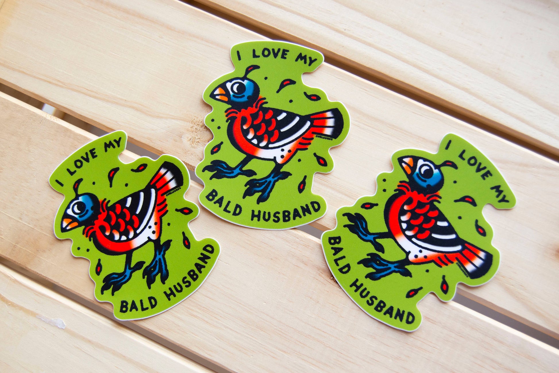 I Love My Bald Husband Cardinal - 3" Vinyl Sticker