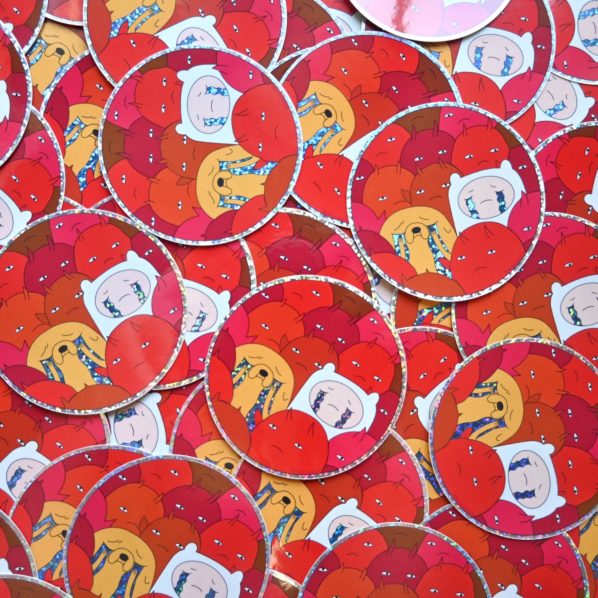 Holographic vinyl sticker, fan art depicting a scene from Adventure Time, in the nightosphere. 3"X3"