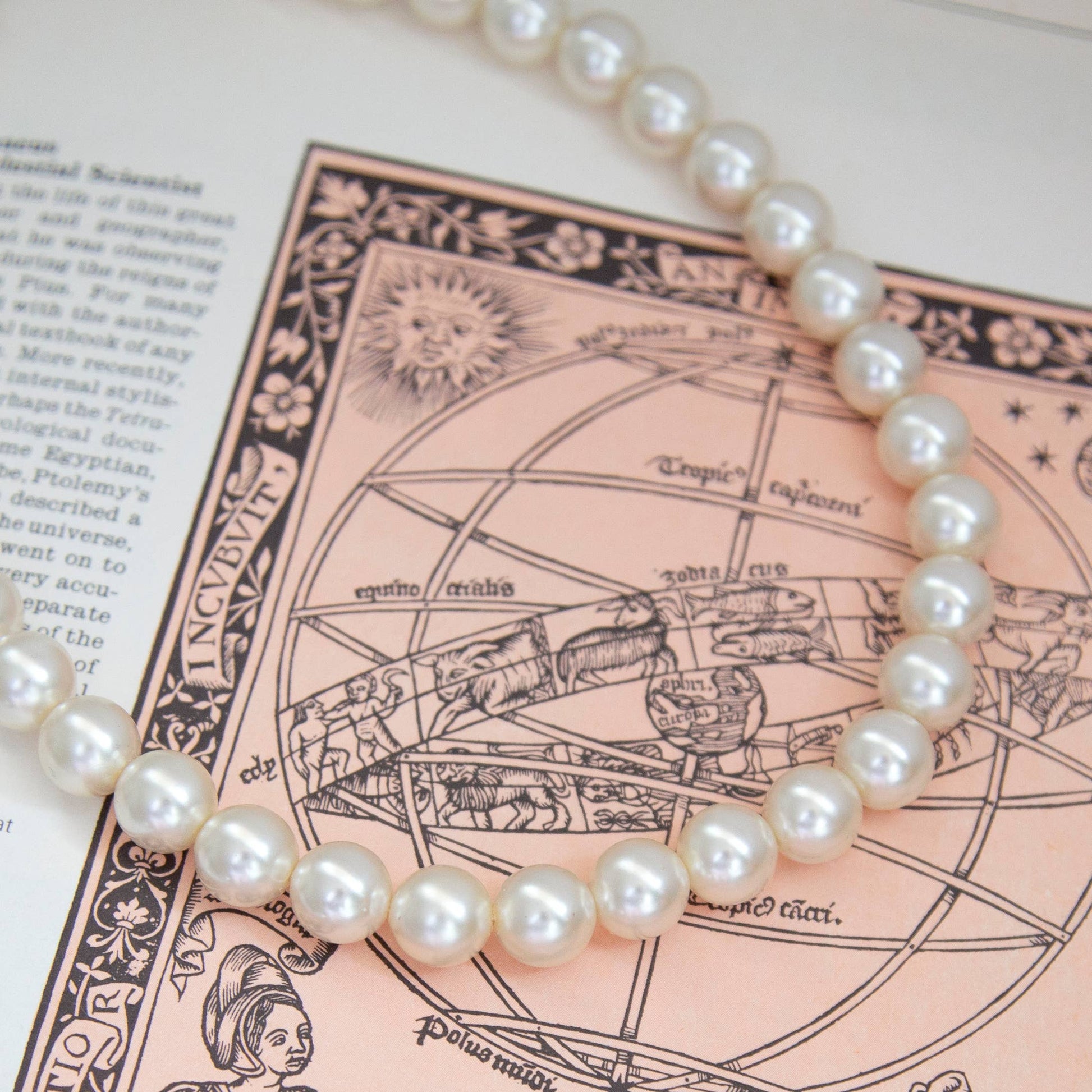 Deadstock, classic vintage chunky, faux pearl necklace with extender to adjust length.