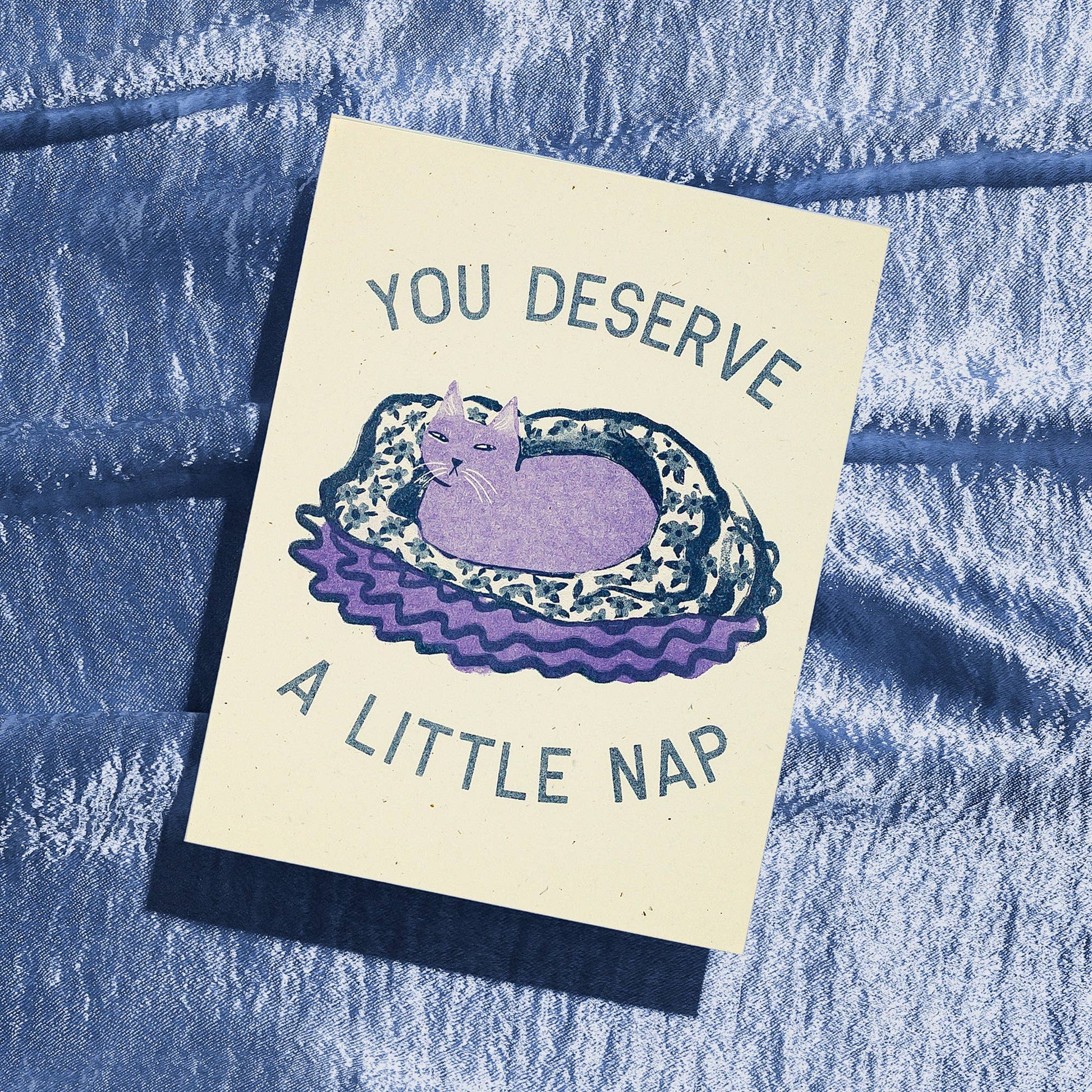 You Deserve a Little Nap Cat - Risograph Greeting Card